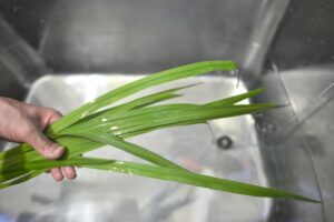 長くてしなやかな葉を軽く束ねて頭に巻くのが一般的です。